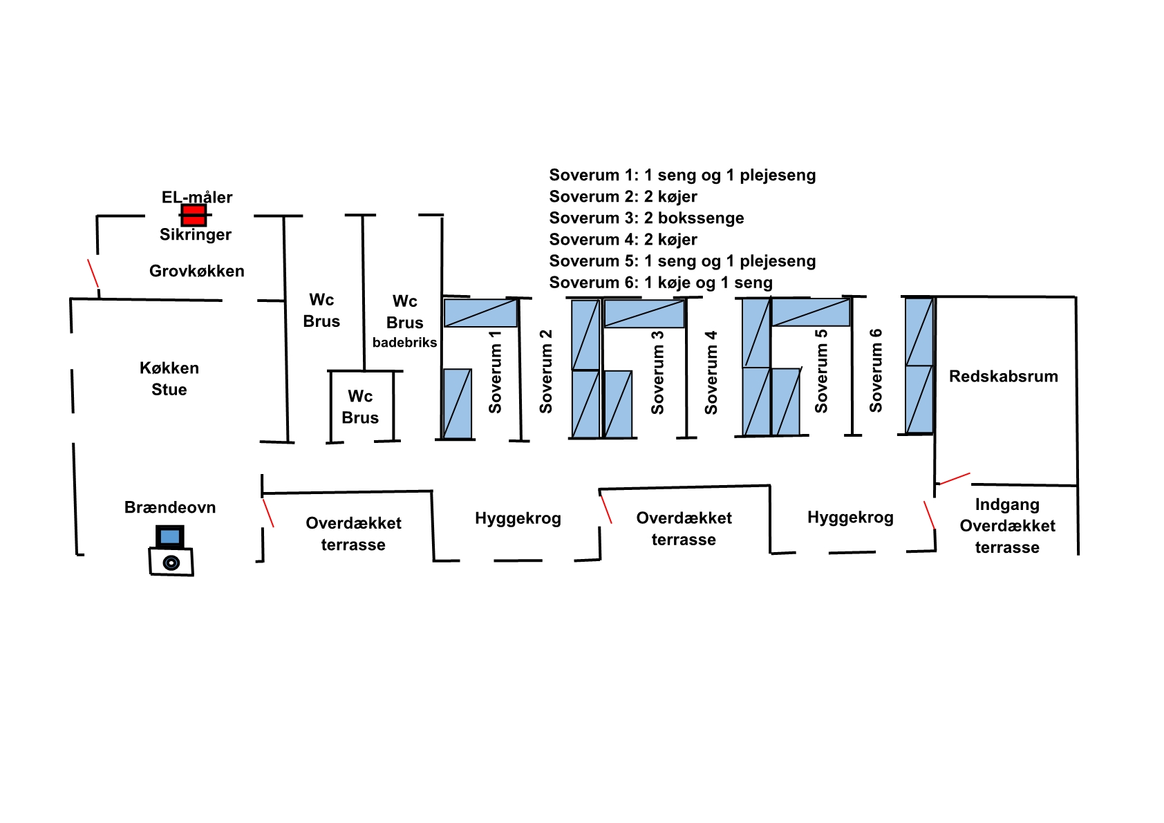 Elforbrug 3,00 Kr/KWh afregnes ved afrejse, kontant eller via MobilePay.