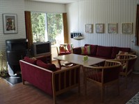 Ophold kan nydes indendørs i den hyggelige stue såvel som ude på de omkringliggende terrasser med borde og bænke. Der er opsat gyngestativ med 2 gynger samt redegynge tæt ved huset. Tæt ved huset er der i 2009 anlagt en boldbane, som vi håber bliver til stor glæde for store og små.
