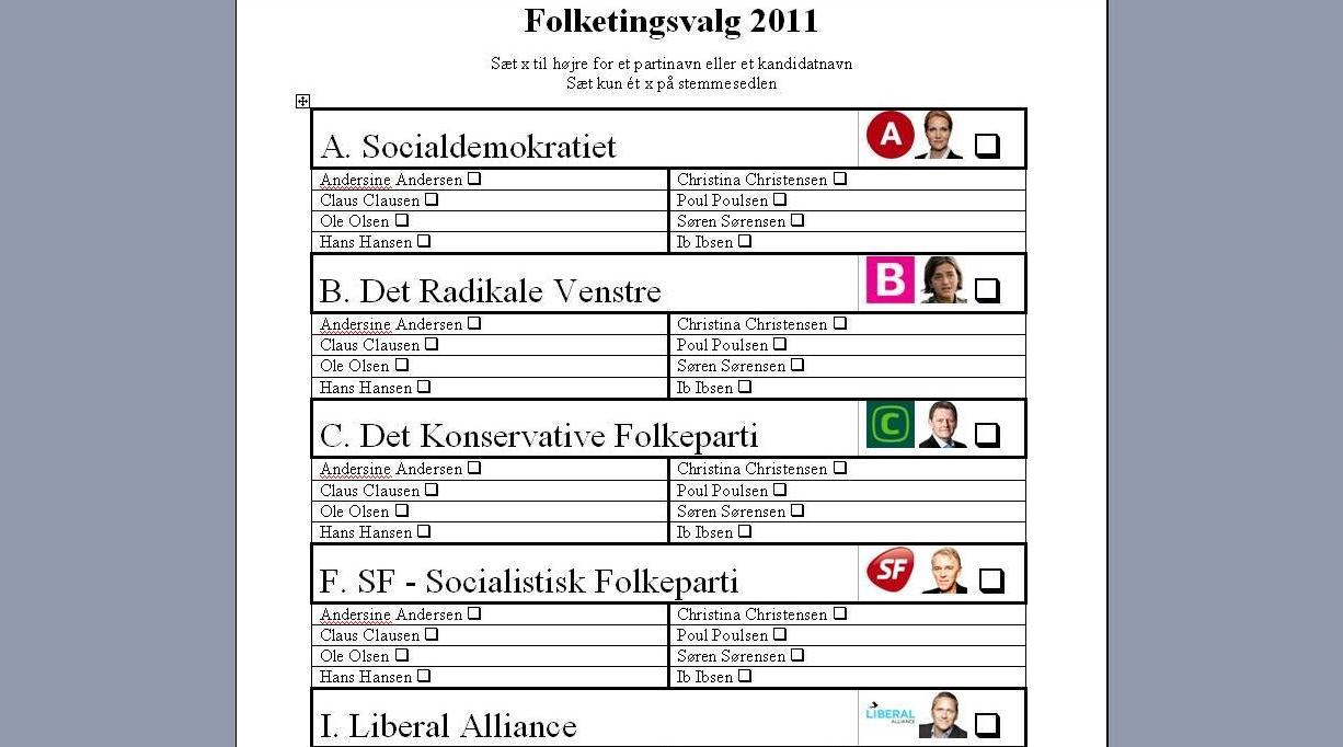 Brev til Indenrigsministeriet om forslag til billeder og logos på stemmeseddel