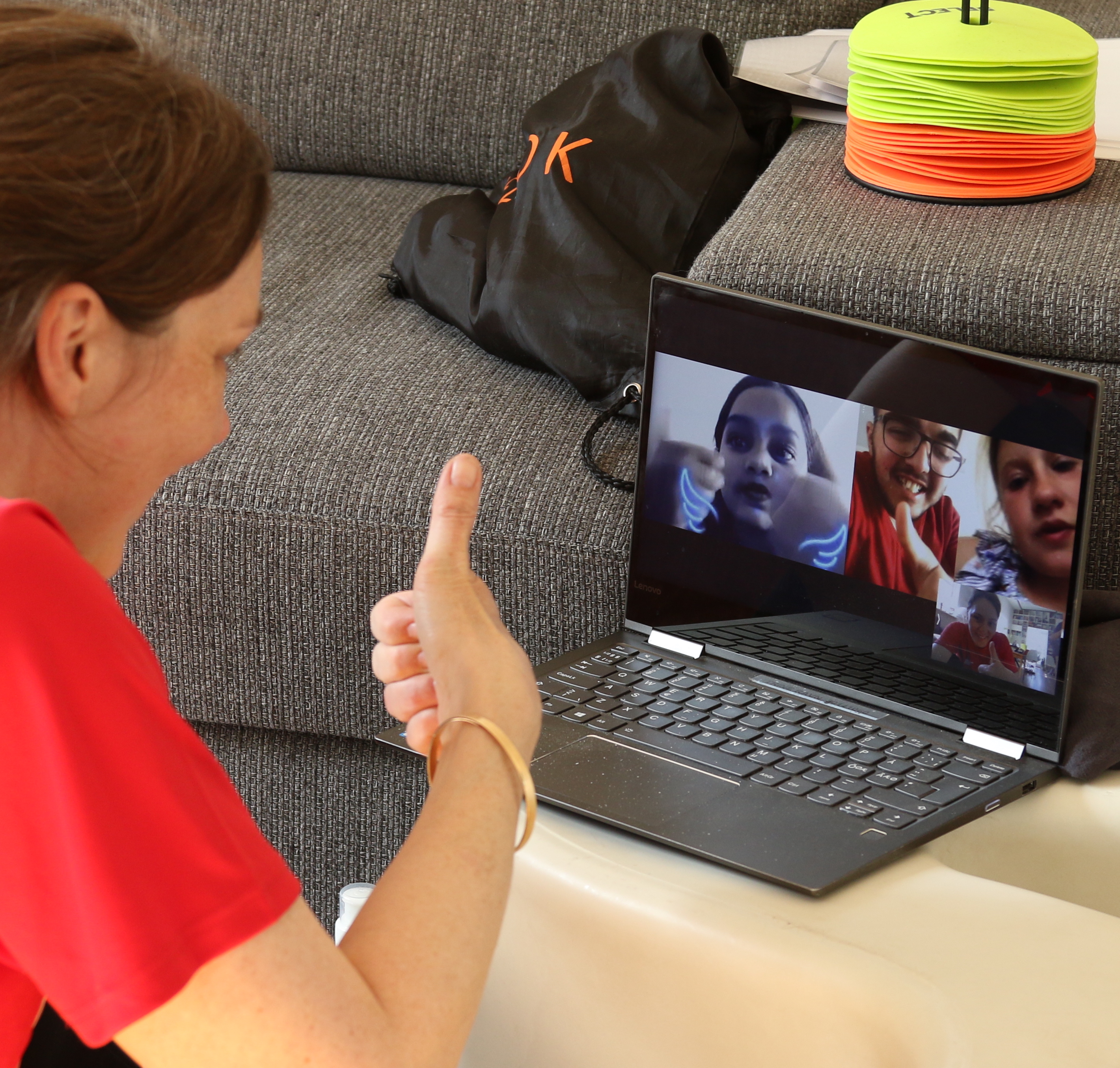 Trine Marie Gulstad Ravn 'facetimer' med nogle af børnene fra IFEL.