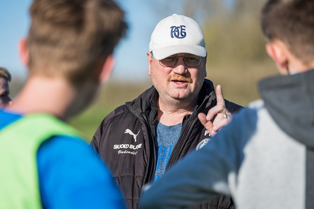 Træner Per Henrik Jensen instruerer nogle af spillerne. Foto: Rasmus Laurvig