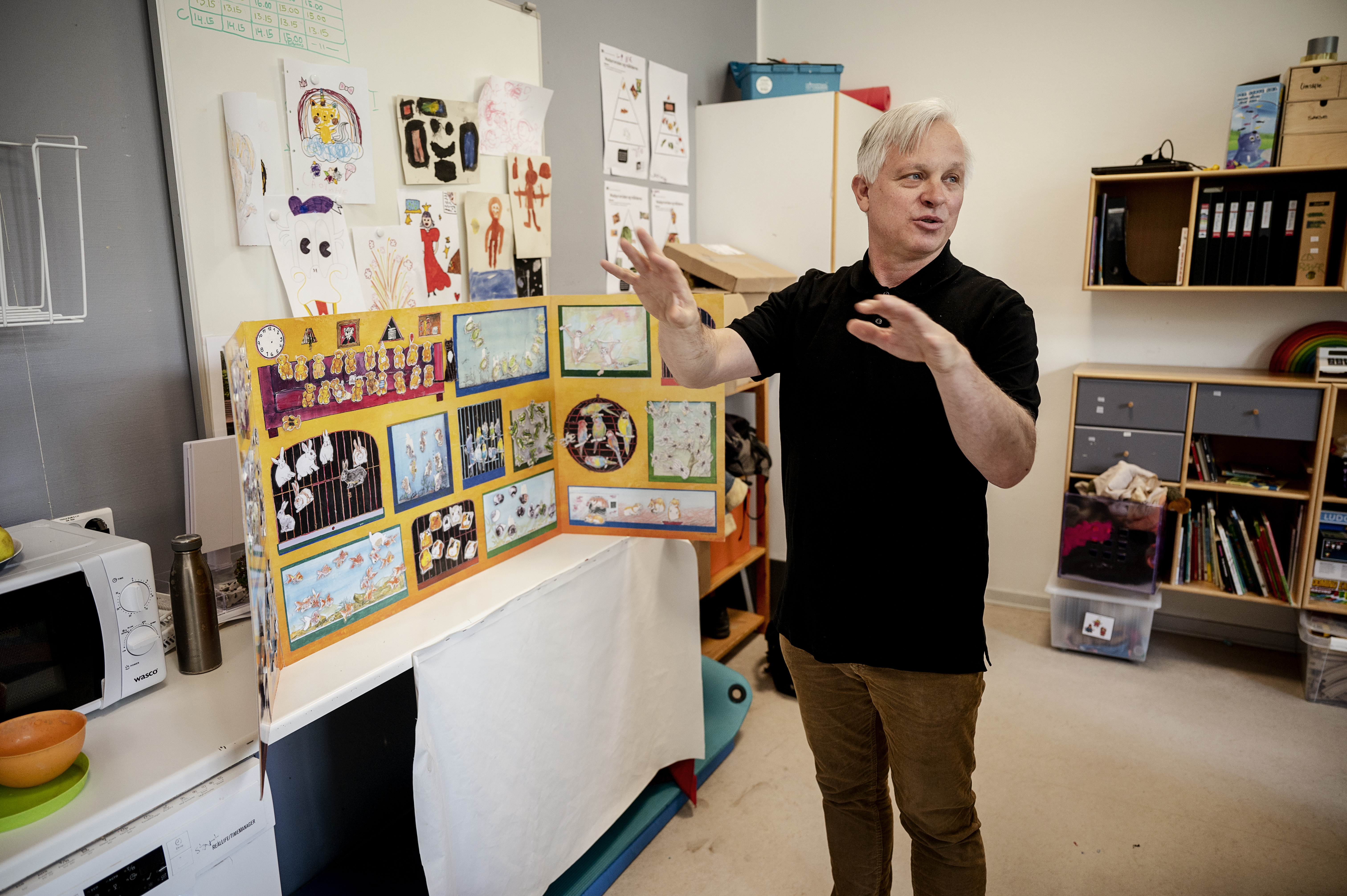 ”Vi har ingen dobbeltlektioner, som man har i folkeskolen. På en formiddag har vi to gange en halv time, hvor der er mere intensive faglige moduler. Men så har vi noget andet, som måske også kan være fagligt – vi har morgensamling, hvor vi taler om, hvad er det for en dag i dag, hvordan er vejret, hvor bor jeg, hvad er mit fulde navn,” uddyber Henrik Grundsted.