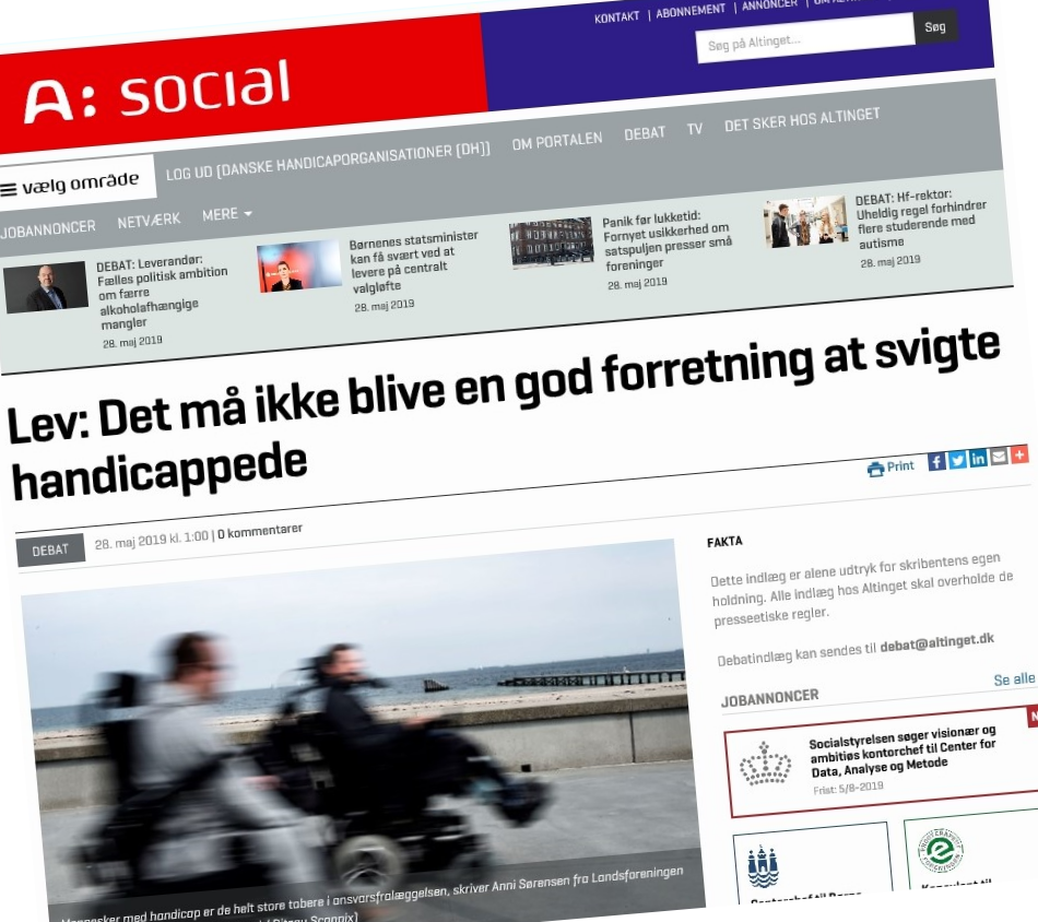 En bred og højlydt protest over en velfærd i frit fald har tydeligvis også været vigtig for mange vælgere ved det netop afholdte folketingsvalg – også på handicapområdet. Flere partier kom med handicapudspil i løbet af valgkampen, og fra partier i begge blokke var der løfter om, at kommunernes økonomi skal følge med, når vi bliver flere børn og ældre