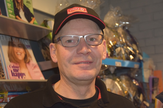Butikschef i Circle K, Jan Andersen, er glad for at have Troels som praktikant på tankstationen.